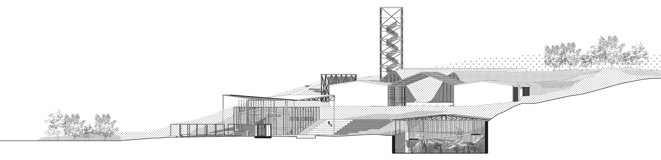 In order to reinforce the public use throughout the whole complex, the public watchtower serves as a vertical element orientation marking and mapping the boundaries of the complex.