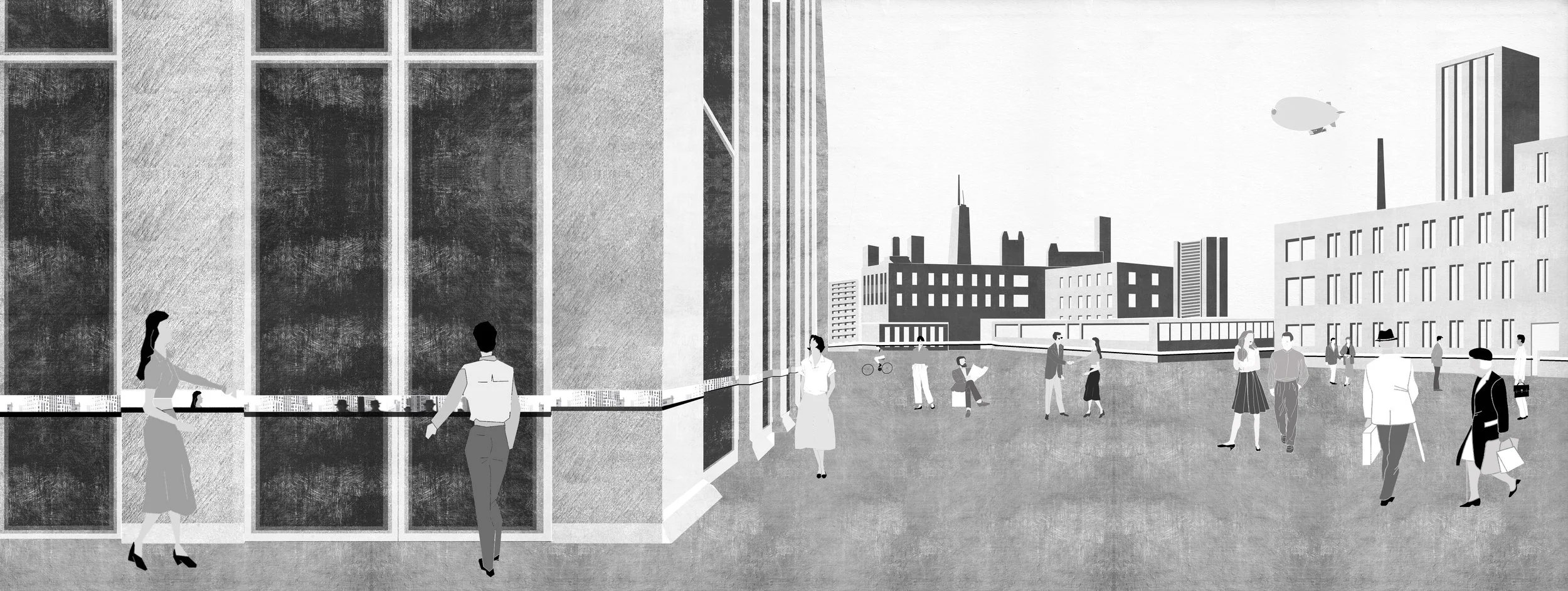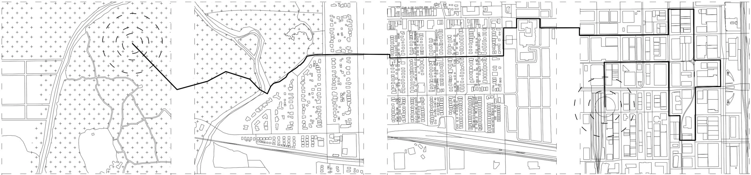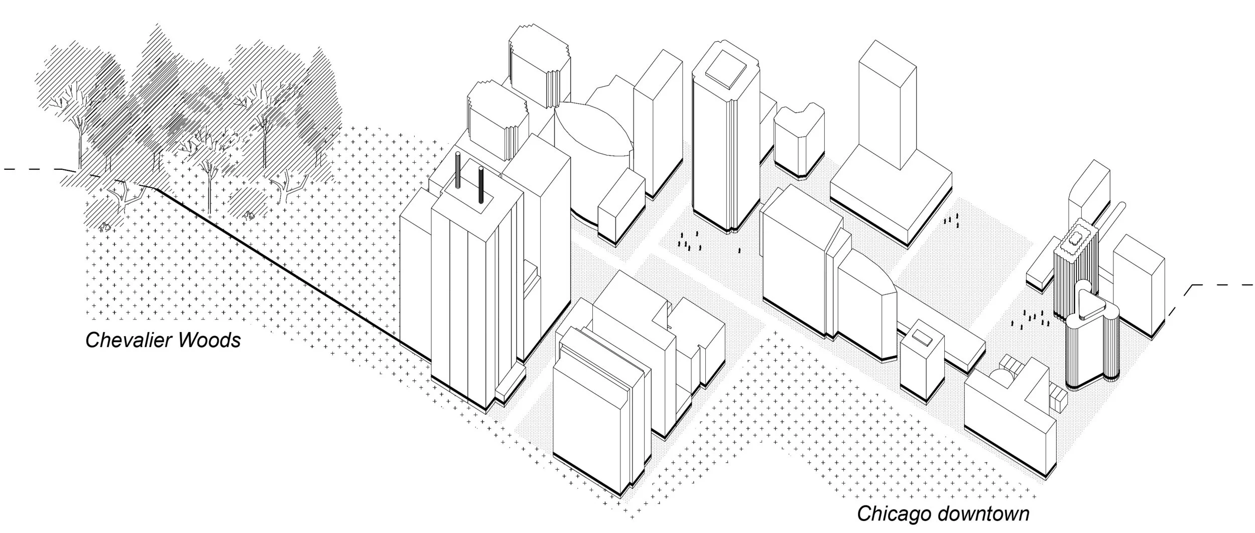 A tomb for Vivian Maier is embodied as a continuous linear reflection which unpretentiously captures the attention of passers-by. Positioned at the waistline height, where she always held her camera, carved in at the street facades around the same paths of Chicago she was (re)visiting, her tomb is a reconstitution of a new monument, experienced from human’s perspective.